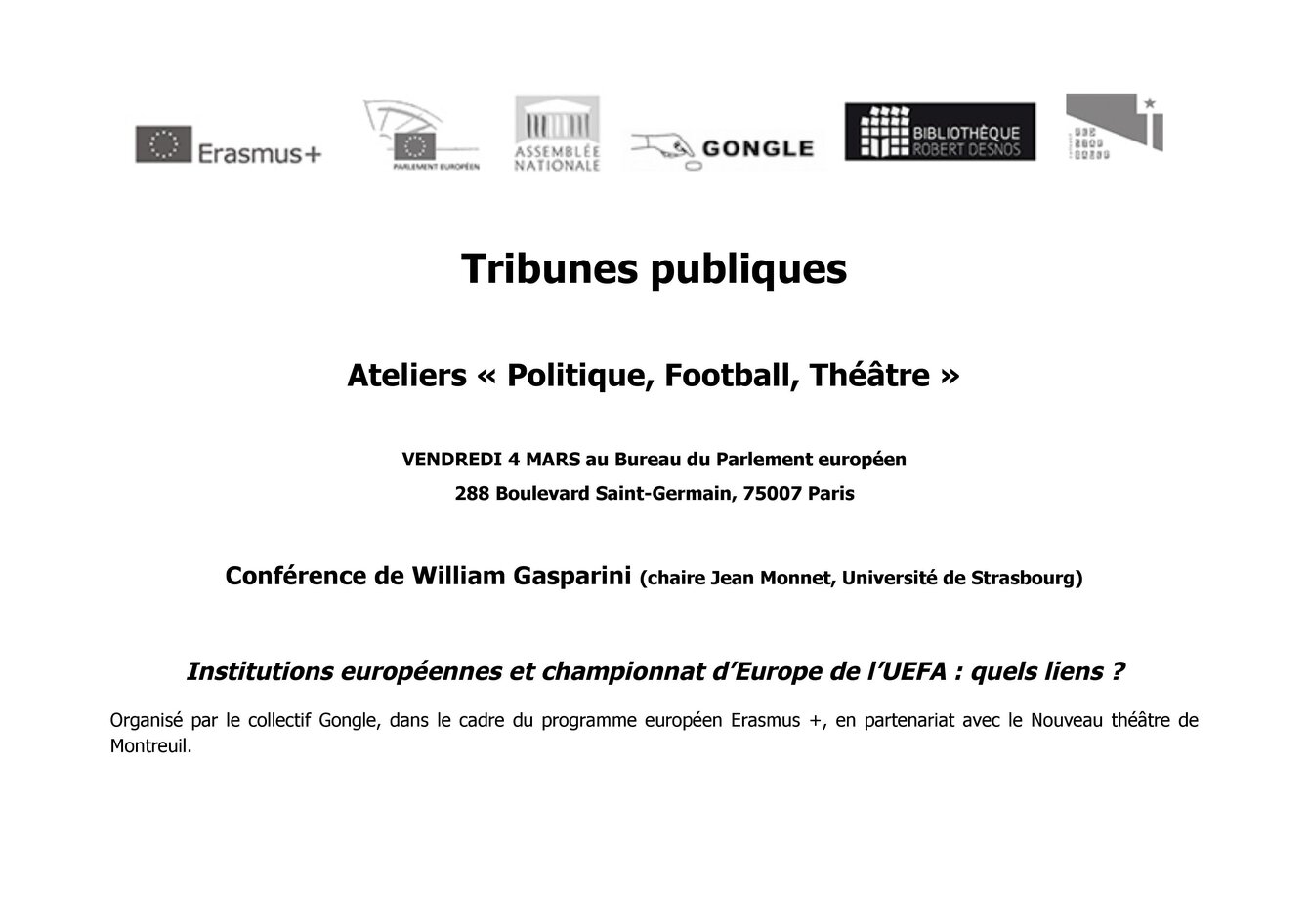 dans le cadre de la Chaire Jean Monnet en sociologie européenne du sport de William Gasparini